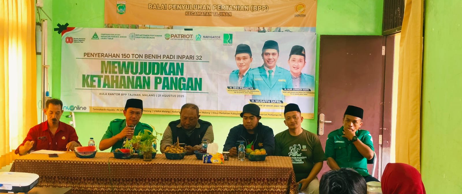 “Ansor melalui Satgas Patriot Ketahanan Pangan hadir bukan hanya dalam ranah advokasi, tetapi juga turun langsung memberi solusi konkret. Pangan adalah persoalan strategis bangsa, dan petani adalah garda depan yang harus kita perkuat. Dengan pembagian 150 ton benih padi ini, kami berharap produktivitas pertanian di Tajinan dapat meningkat signifikan dan menjadi model kemandirian pangan di daerah,” ujar H. Deny Prasetya.