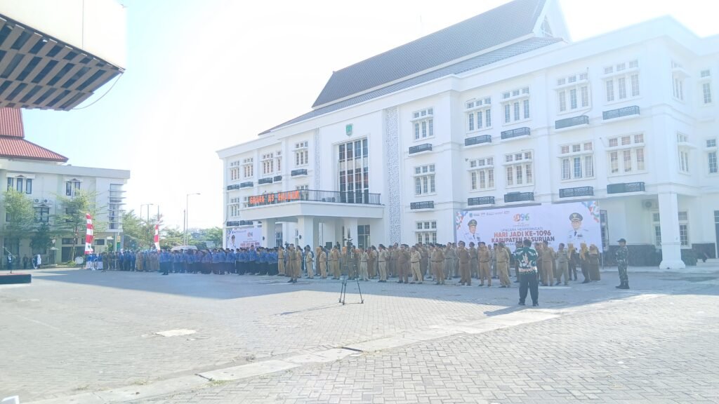 Kabarjatim.id | Pasuruan -Peringatan Hari Jadi Kabupaten Pasuruan ke-1096 ditandai dengan upacara sederhana di Halaman Dinas Pendidikan, Kamis (18/9/2025). Upacara dipimpin oleh Bupati Pasuruan, Rusdi Sutejo, dengan dihadiri sejumlah pejabat daerah, mulai dari Wakil Bupati Shobih Asrori, Sekda Yudha Triwidya Sasongko, hingga anggota Forpimda.