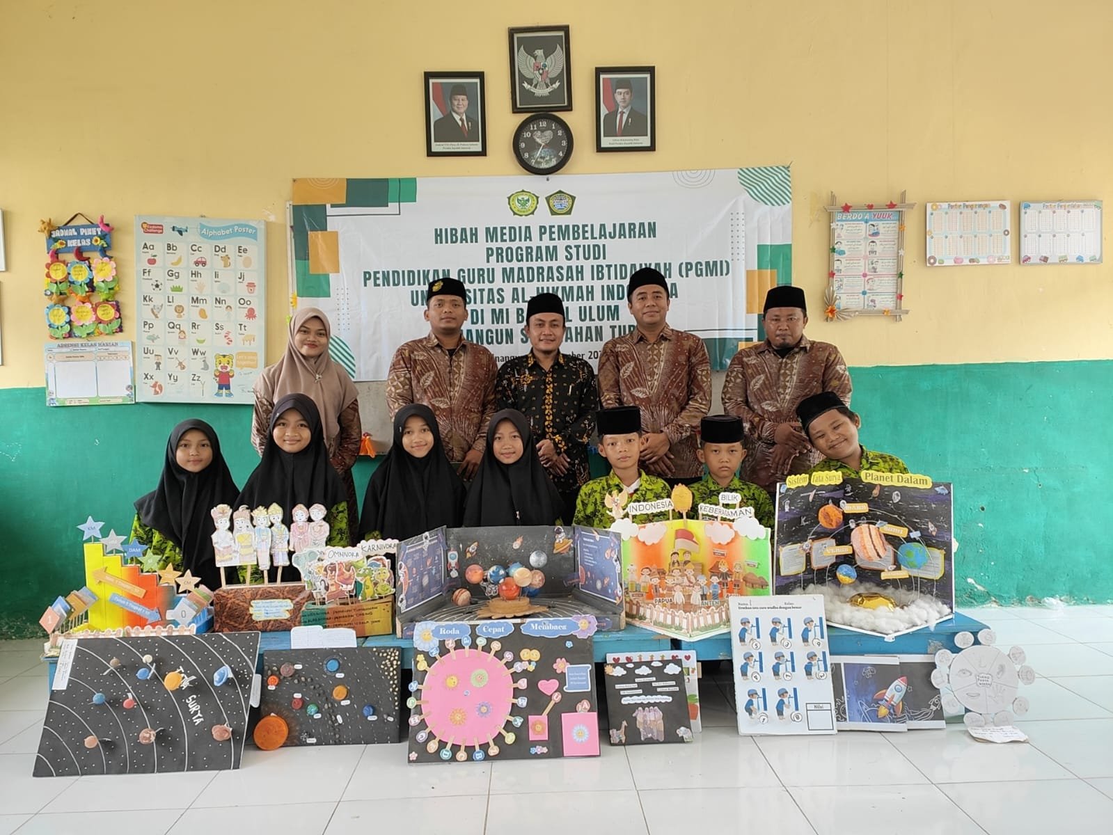 Kegiatan yang dilaksanakan pada Rabu, 12 November 2025 pukul 09.00 WIB ini dihadiri oleh Kepala Sekolah MI Bahrul Ulum, A. Qomarudin, S.Pd, beserta dewan guru dan seluruh siswa. Dalam suasana penuh semangat kebersamaan, pihak PGMI UAI menyerahkan berbagai media pembelajaran inovatif yang dapat digunakan untuk mendukung proses belajar mengajar, terutama dalam meningkatkan kreativitas dan minat belajar siswa di tingkat Madrasah Ibtidaiyah.