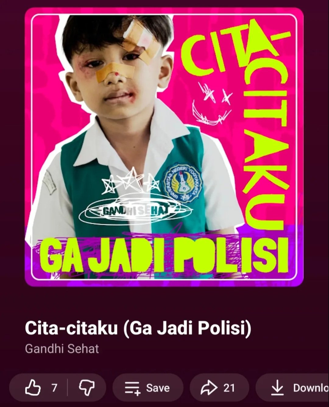 Kabarjatim.id | Jakarta -Jagat media sosial dihebohkan dengan kabar penarikan lagu berjudul “Cita-Citaku (Ga Jadi Polisi)” yang dibawakan seorang bocah berusia 6 tahun. Lagu yang sempat beredar selama sepekan itu tiba-tiba diumumkan ditarik dari peredaran melalui unggahan di akun Instagram resmi @Gandhi_sehat.