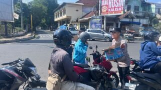 Polisi Peduli : Polres Bondowoso Berbagi Air Minum kepada Warga yang Antri di SPBU